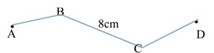 Đường gấp khúc ABCD có độ dài là 18cm. Đoạn BC là 8cm, đoạn CD ngắn hơn đoạn BC là 2cm.